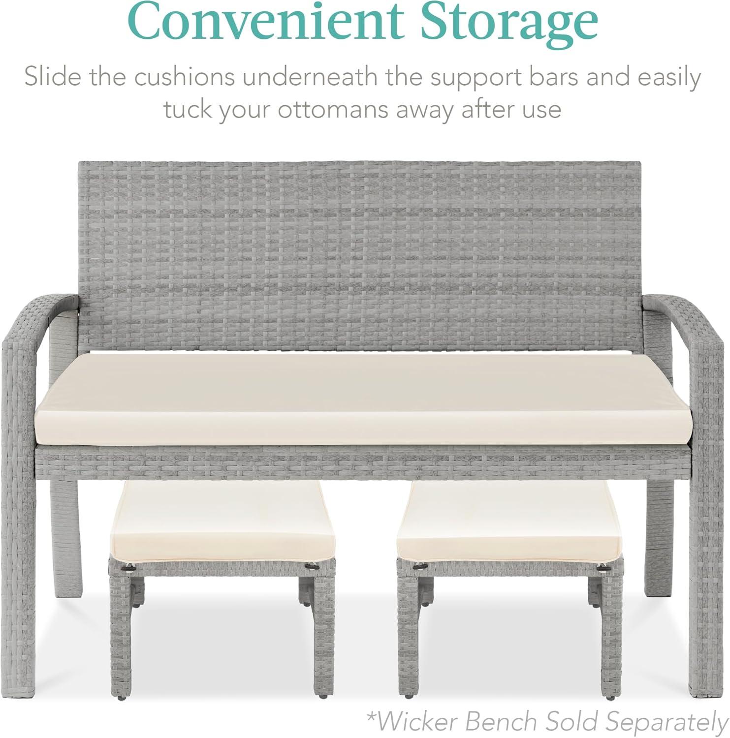 CONVENIENT STORAGE: Easily tuck the cushions underneath the support bars to conveniently store these ottomans away when not in use