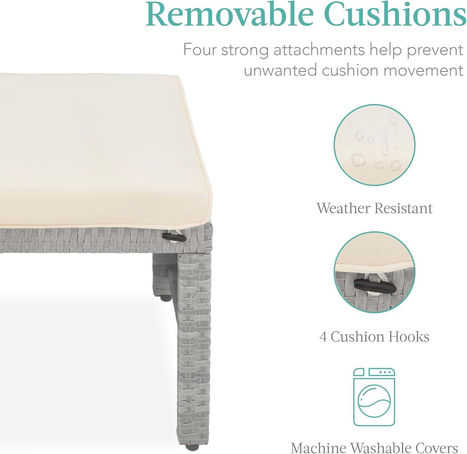 Best Choice Products Set of 2 Wicker Ottomans, Multipurpose Outdoor Furniture for Patio, Backyard, Additional Seating, Footrest, Side Table w/Removable Cushions, Steel Frame – Gray/Cream(Gray/Cream)