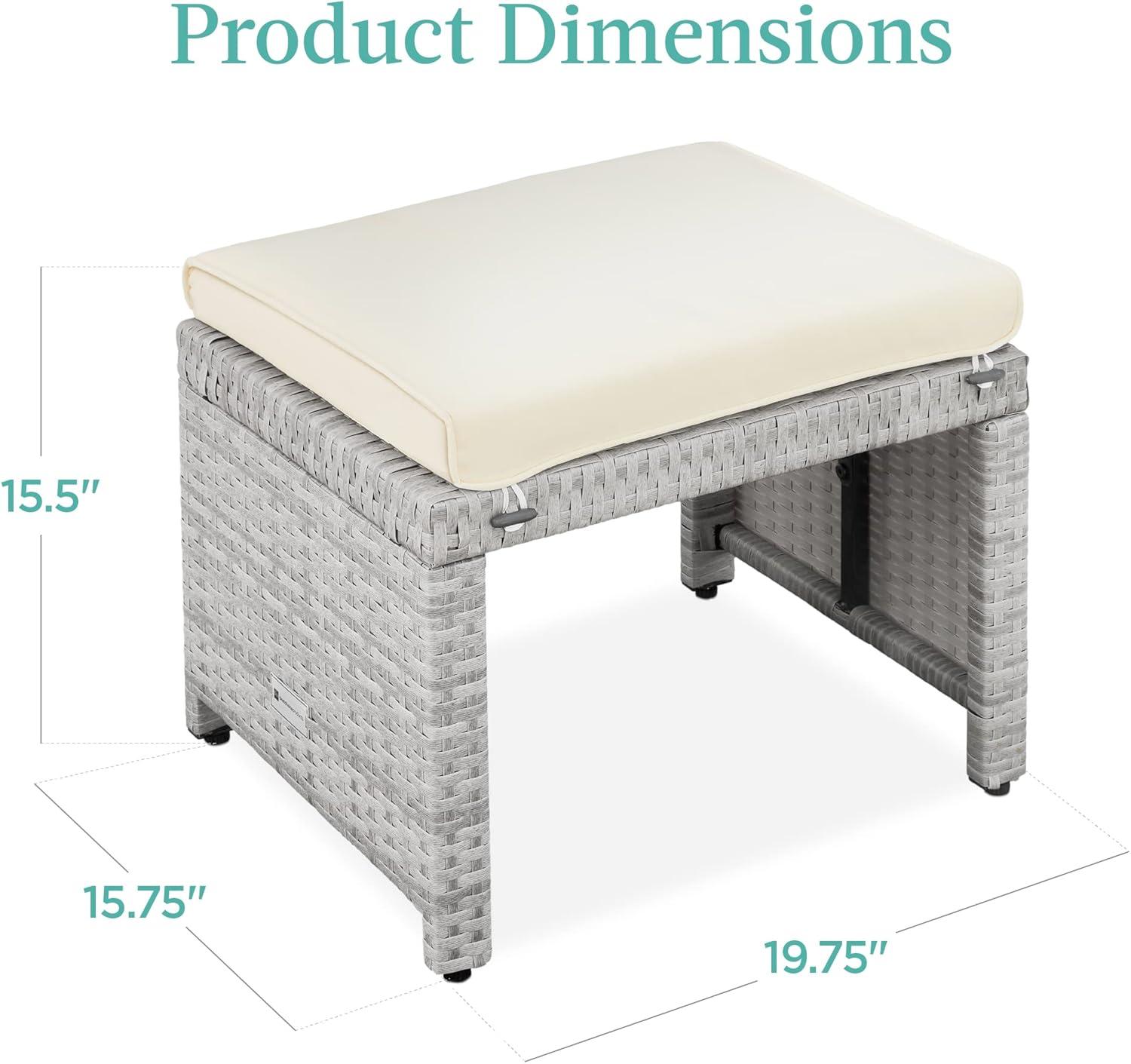 Best Choice Products Set of 2 Wicker Ottomans, Multipurpose Outdoor Furniture for Patio, Backyard, Additional Seating, Footrest, Side Table w/Removable Cushions, Steel Frame - Gray/Cream(Gray/Cream)