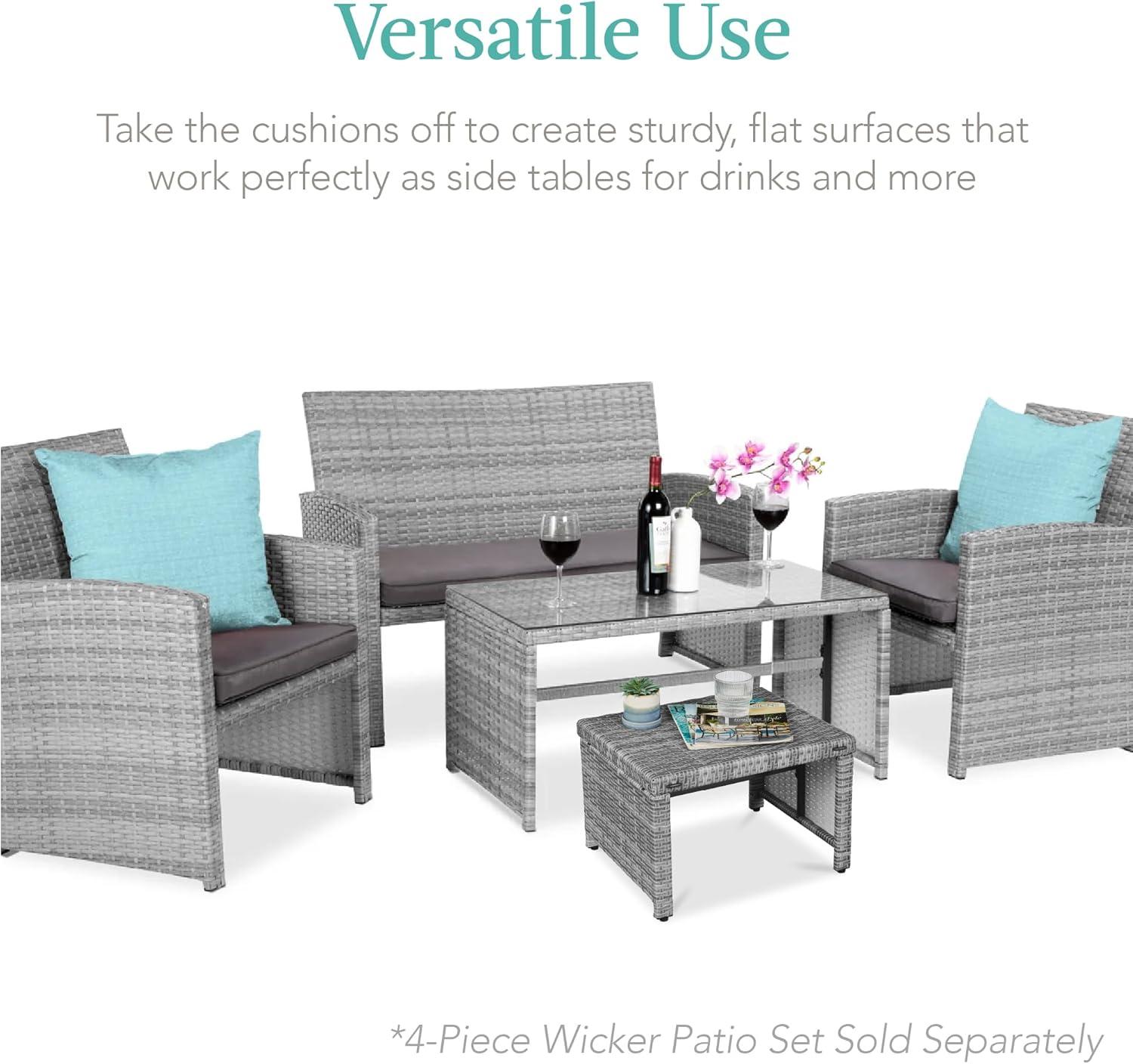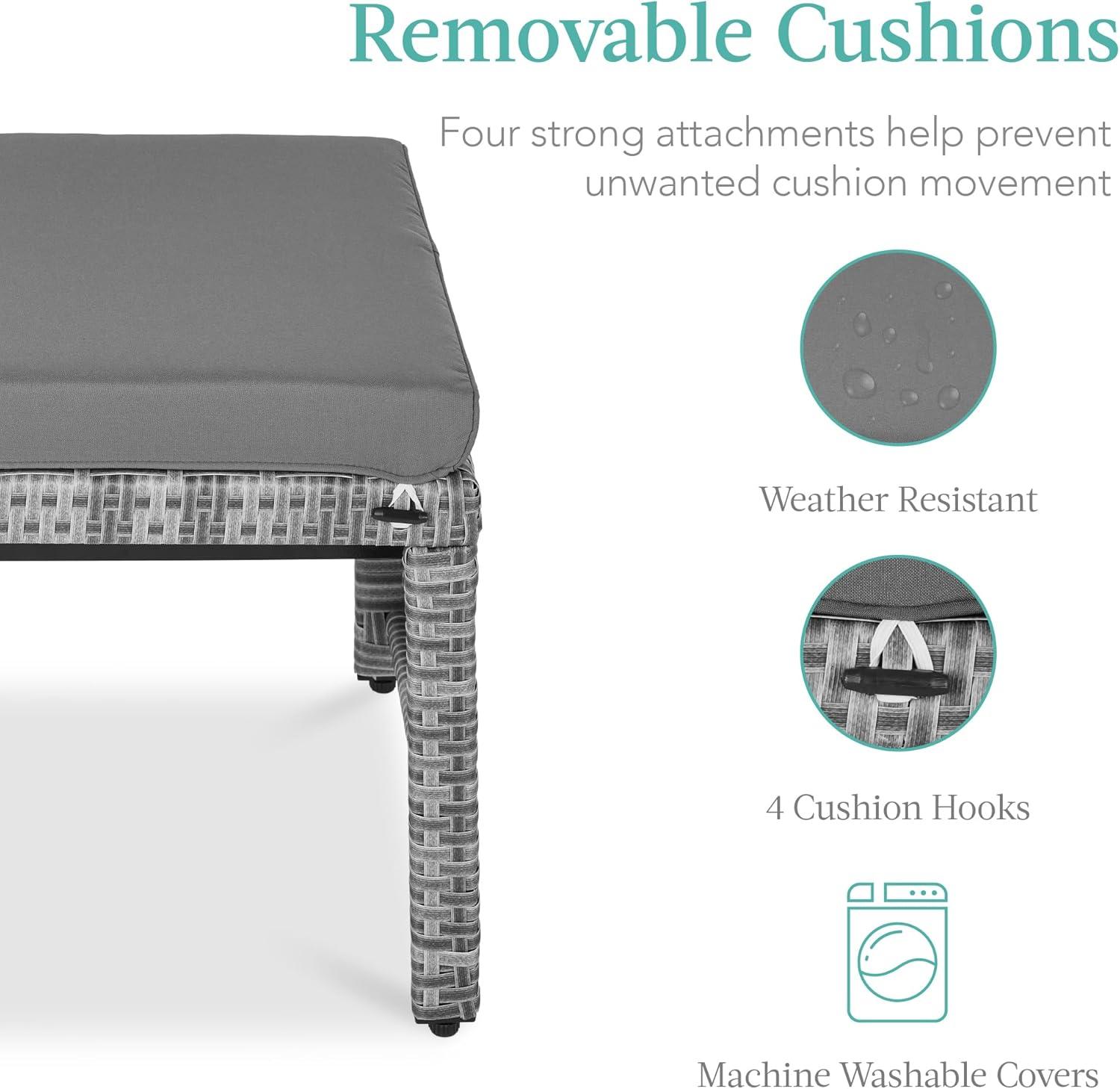 Best Choice Products Set of 2 Wicker Ottomans, Multipurpose Outdoor Furniture for Patio, Backyard, Additional Seating, Footrest, Side Table w/Removable Cushions, Steel Frame – Gray/Cream(Gray/Gray)