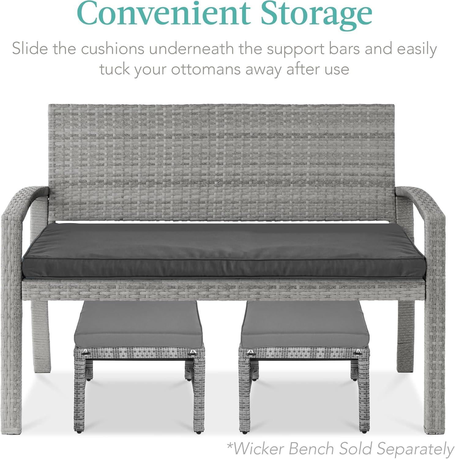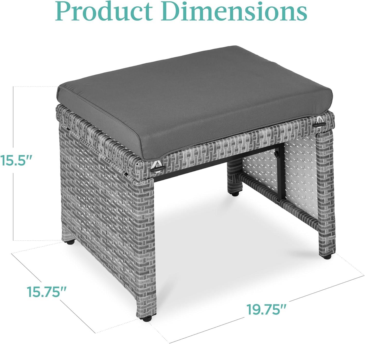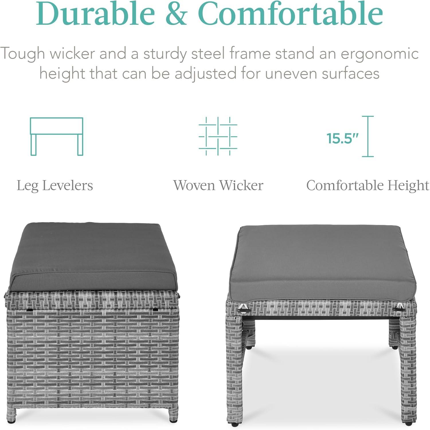 Best Choice Products Set of 2 Wicker Ottomans, Multipurpose Outdoor Furniture for Patio, Backyard, Additional Seating, Footrest, Side Table w/Removable Cushions, Steel Frame - Gray/Cream(Gray/Gray)