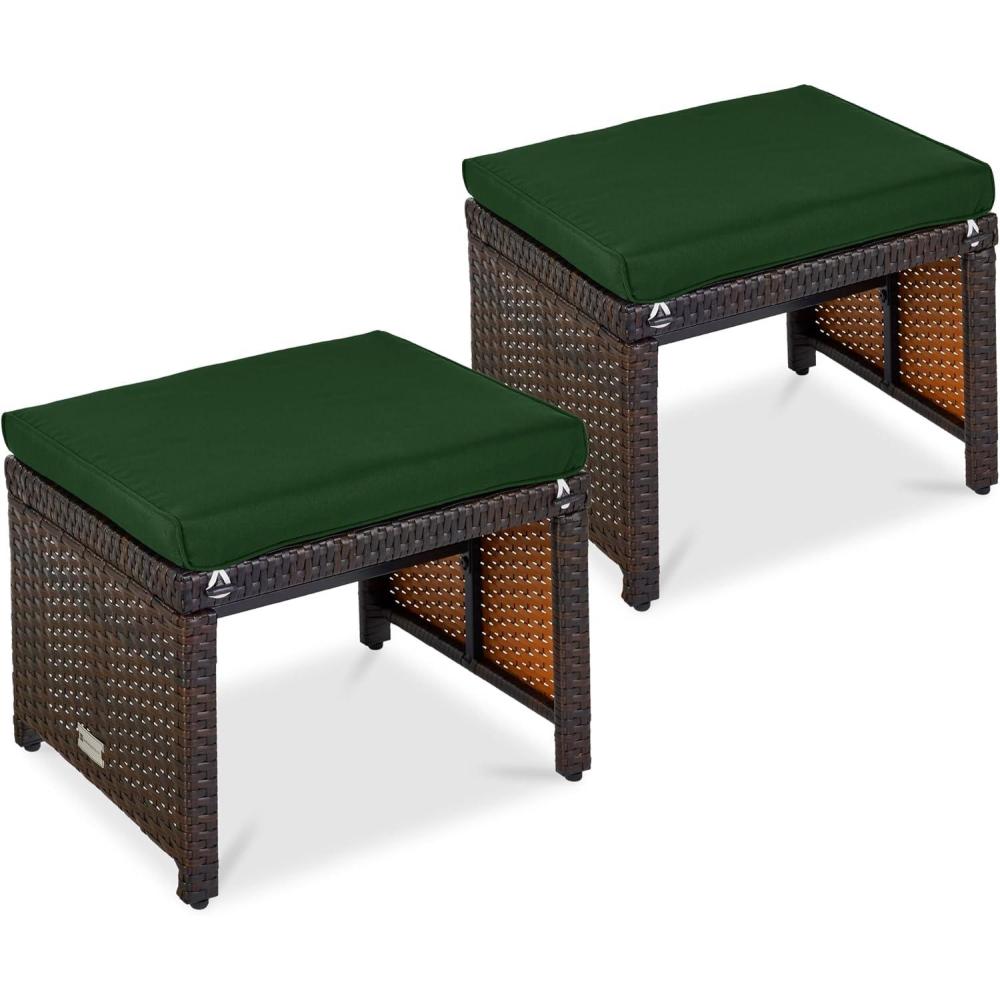 Best Choice Products Set of 2 Wicker Ottomans, Multipurpose Outdoor Furniture for Patio, Backyard, Additional Seating, Footrest, Side Table w/Removable Cushions, Steel Frame – Gray/Cream(Midnight Green/Brown)