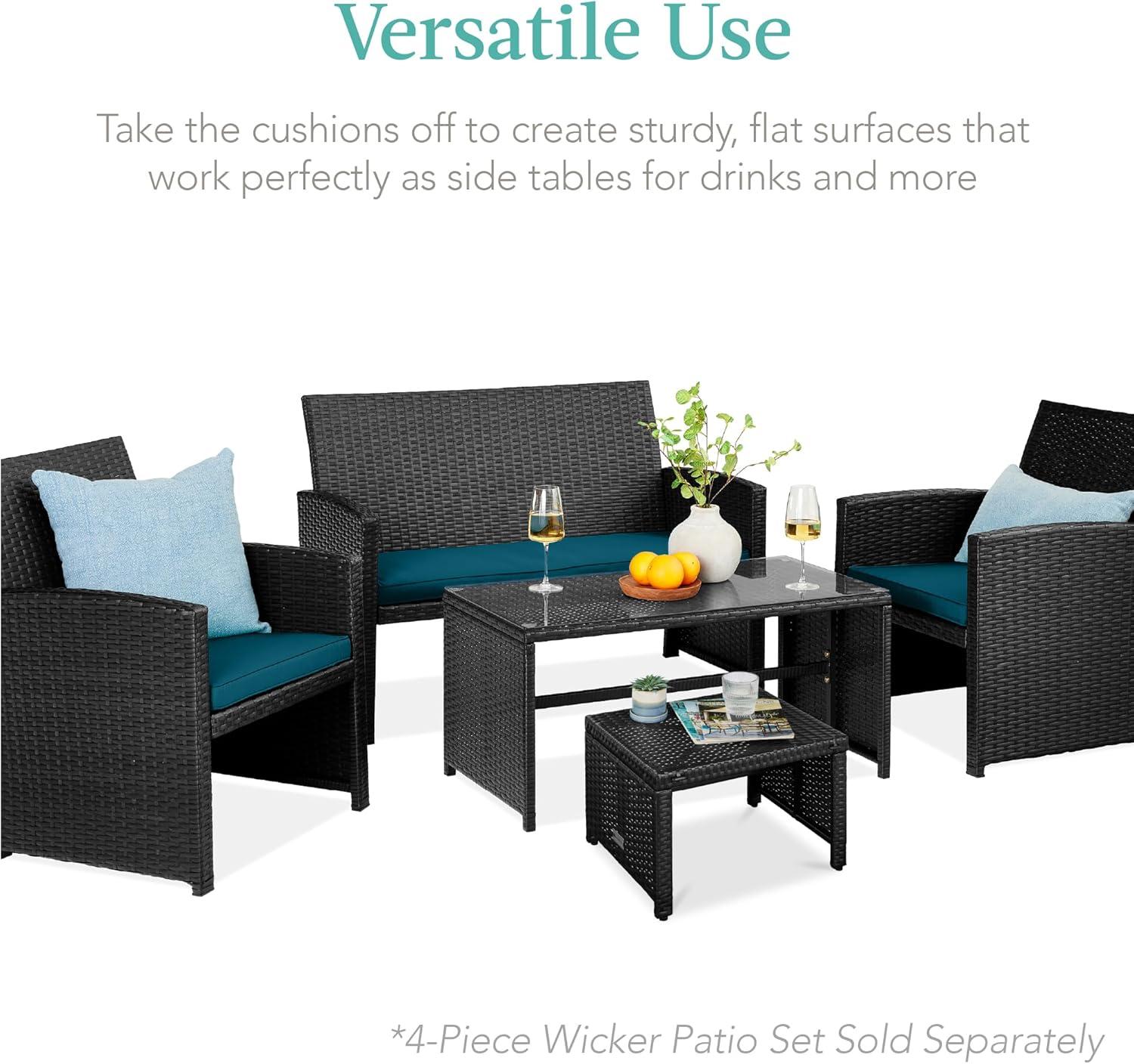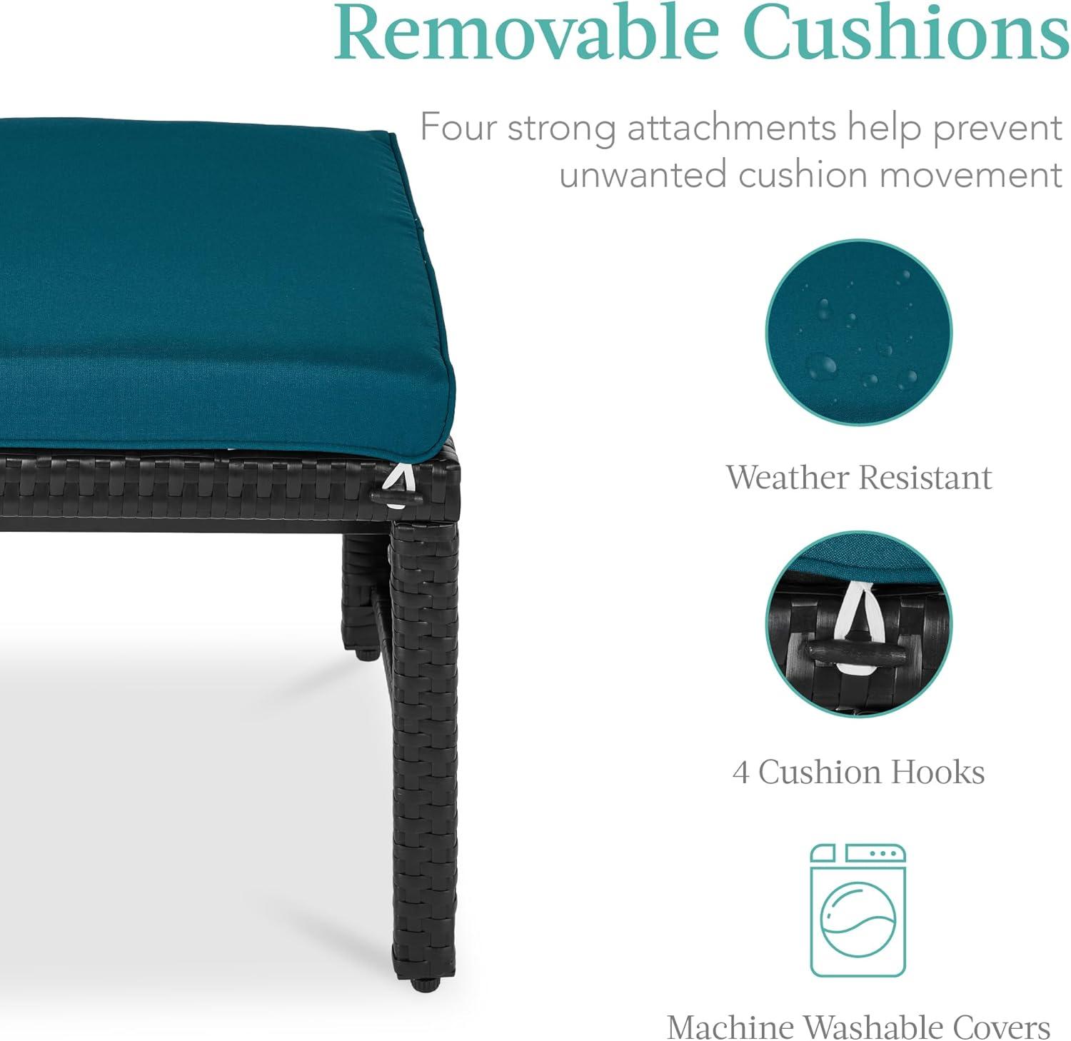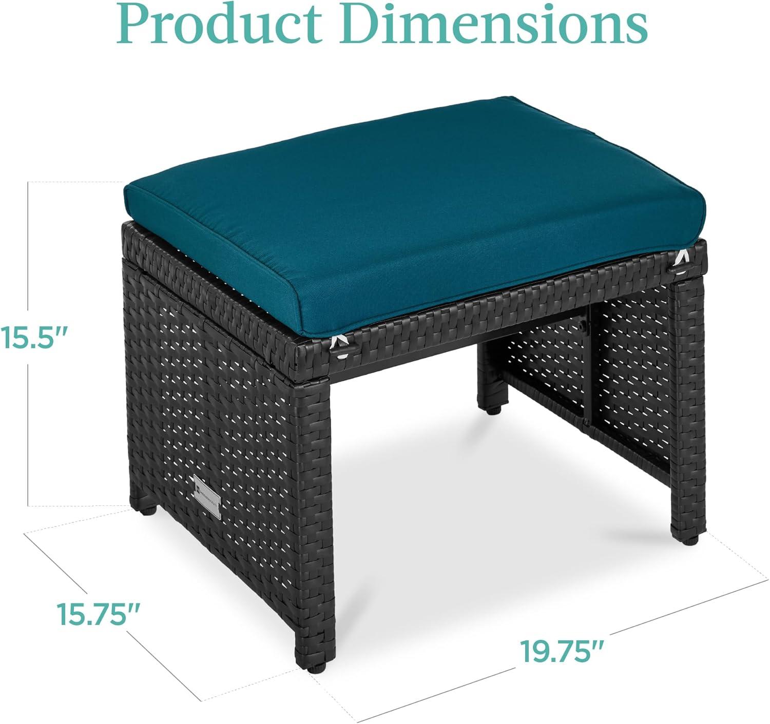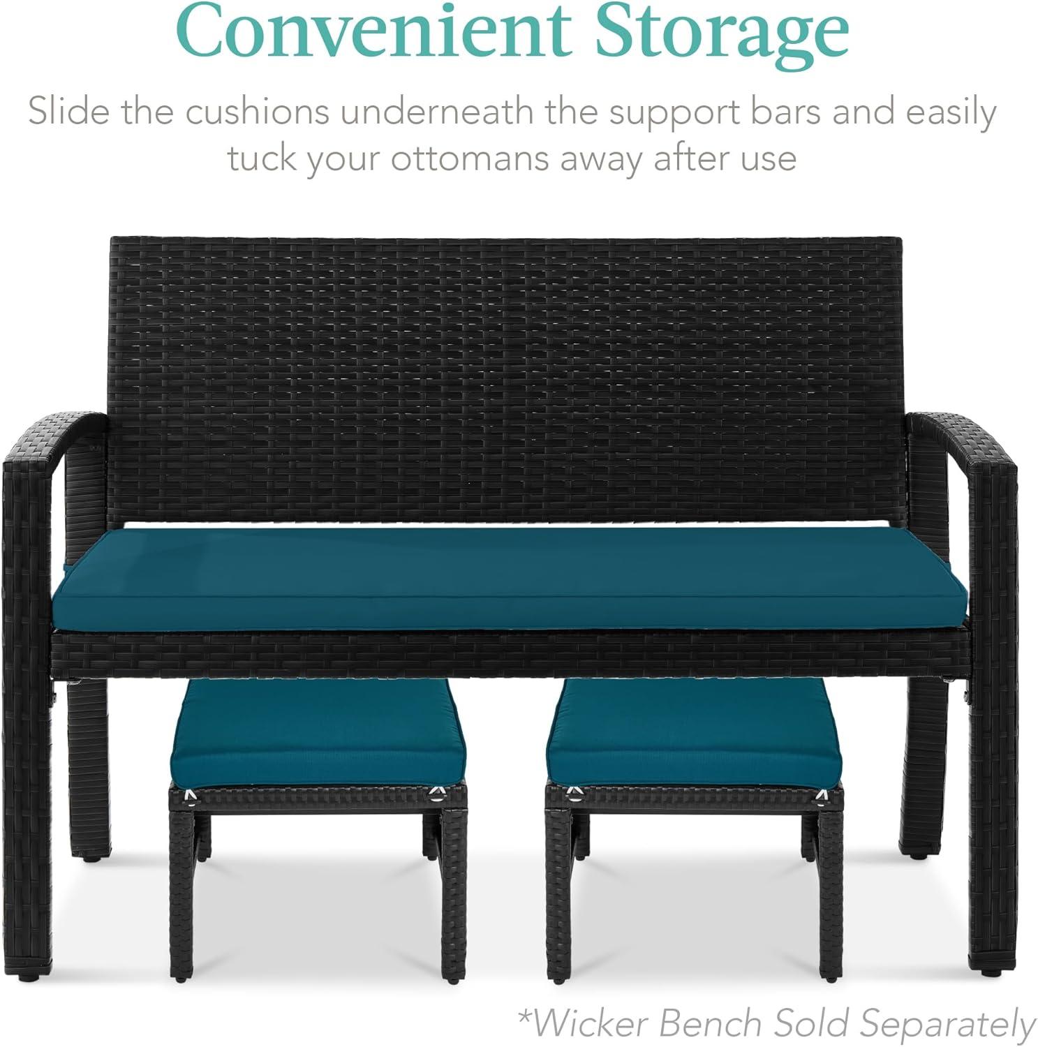 Best Choice Products Set of 2 Wicker Ottomans, Multipurpose Outdoor Furniture for Patio, Backyard, Additional Seating, Footrest, Side Table w/Removable Cushions, Steel Frame – Gray/Cream(Peacock Blue/Black)
