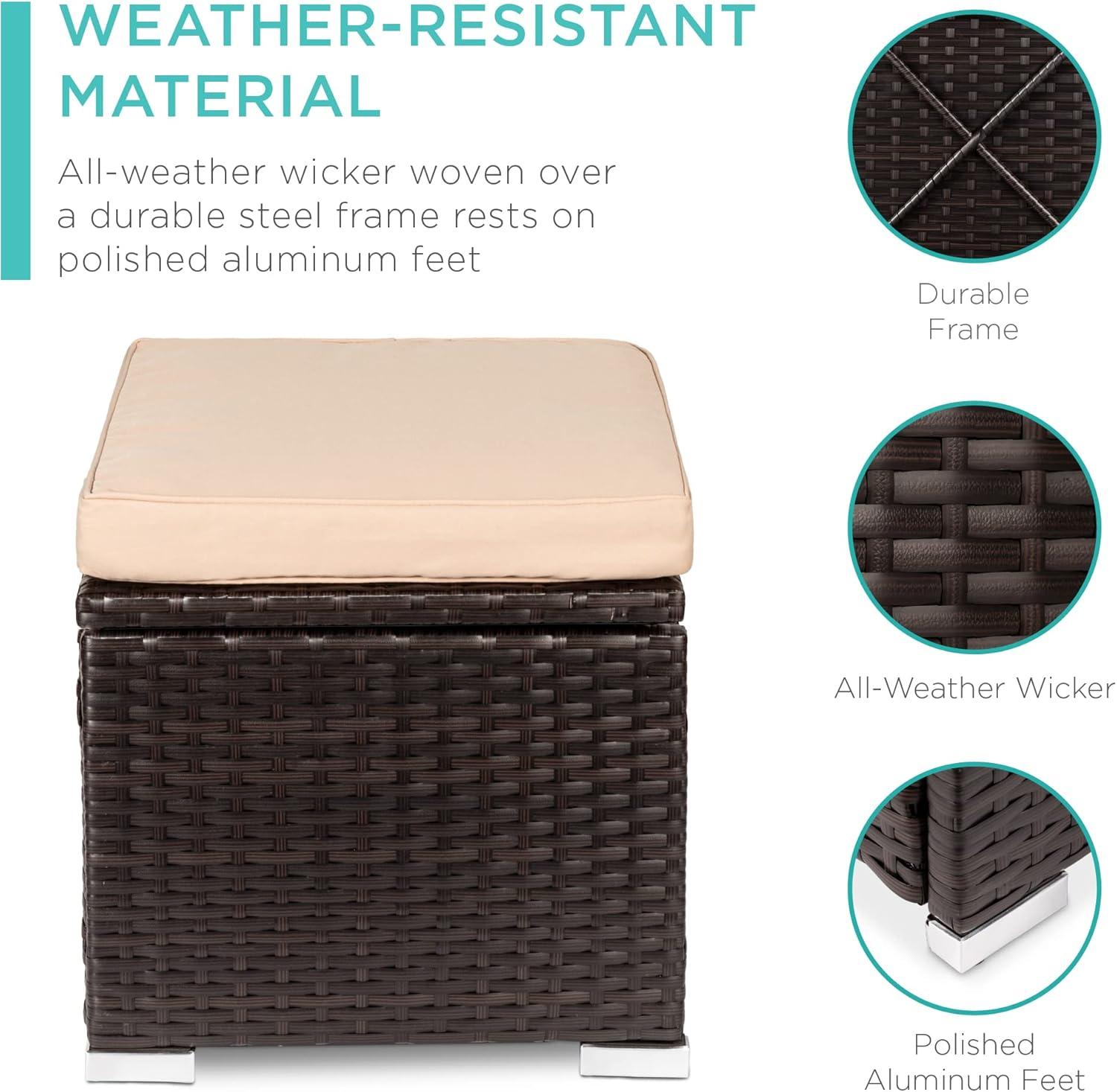 Best Choice Products Set of 2 Wicker Ottomans, Multipurpose Outdoor Furniture for Patio, Backyard, Additional Seating, Footrest, Side Table w/Storage, Removable Cushions - Brown/Beige(Brown/Beige)