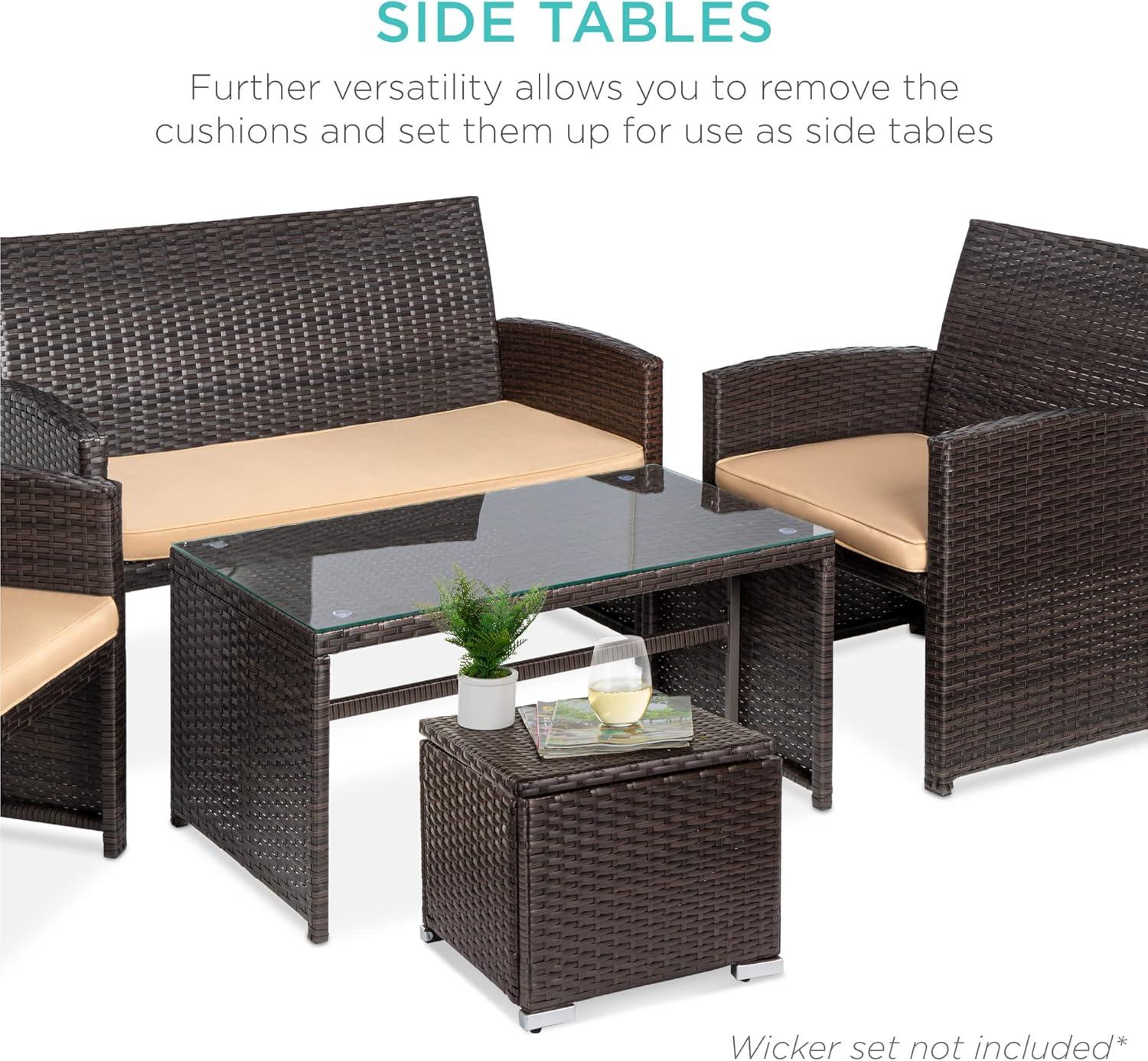 Best Choice Products Set of 2 Wicker Ottomans, Multipurpose Outdoor Furniture for Patio, Backyard, Additional Seating, Footrest, Side Table w/Storage, Removable Cushions – Brown/Beige(Brown/Beige)