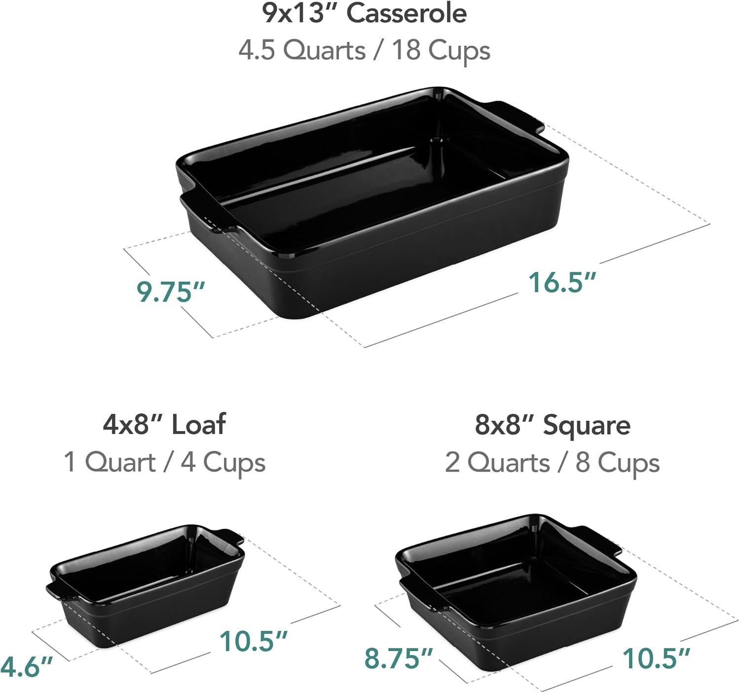 3-PIECE BAKEWARE SET: Includes three standard-sized baking dishes-a casserole/rectangular dish, a square pan, and a loaf pan-designed to handle all your cooking, baking and serving needs