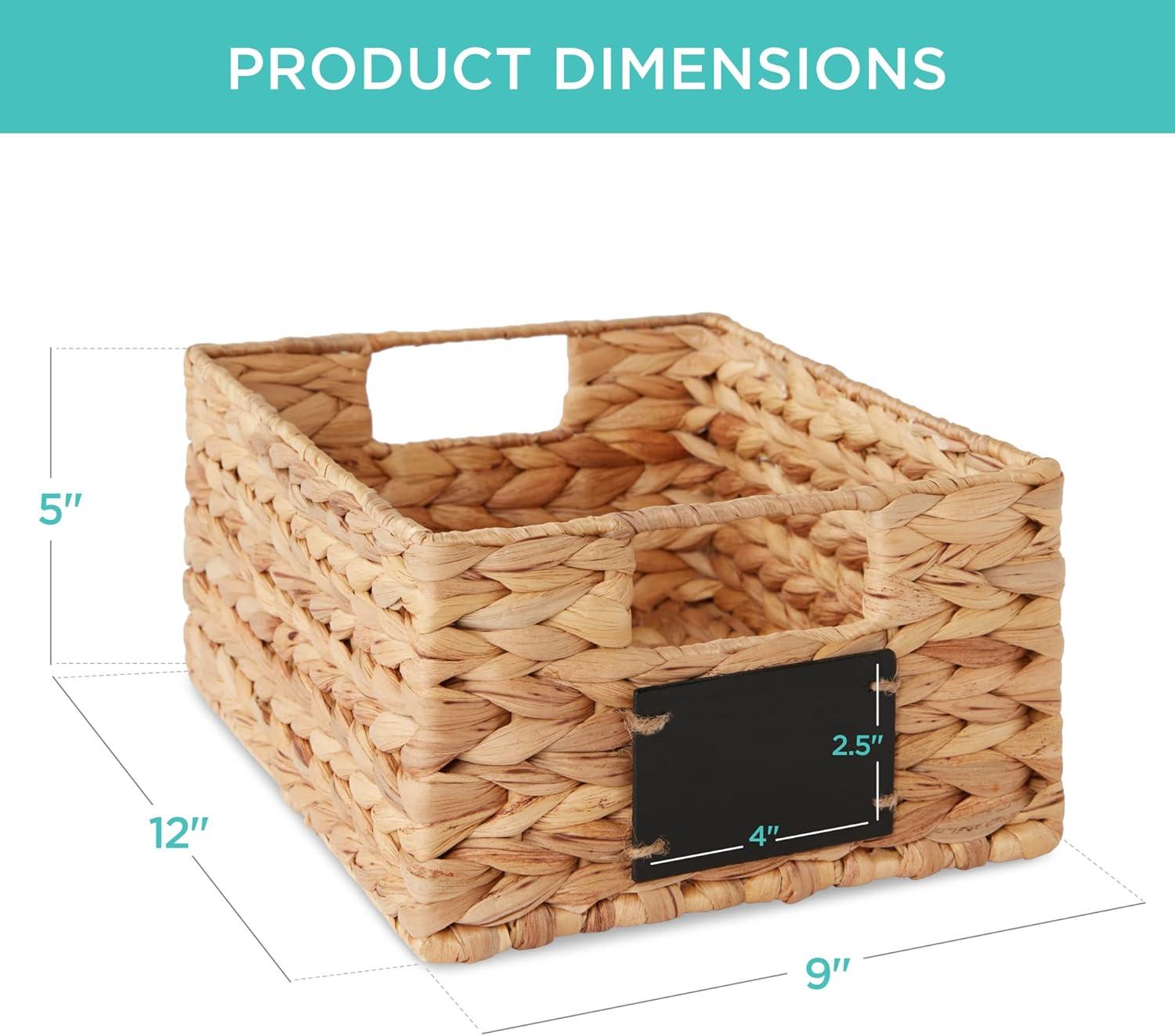 Best Choice Products Set of 4 9x12in Water Hyacinth Pantry Baskets, Woven Organizers w/Chalkboard Label, Chalk Marker - Natural(Natural)