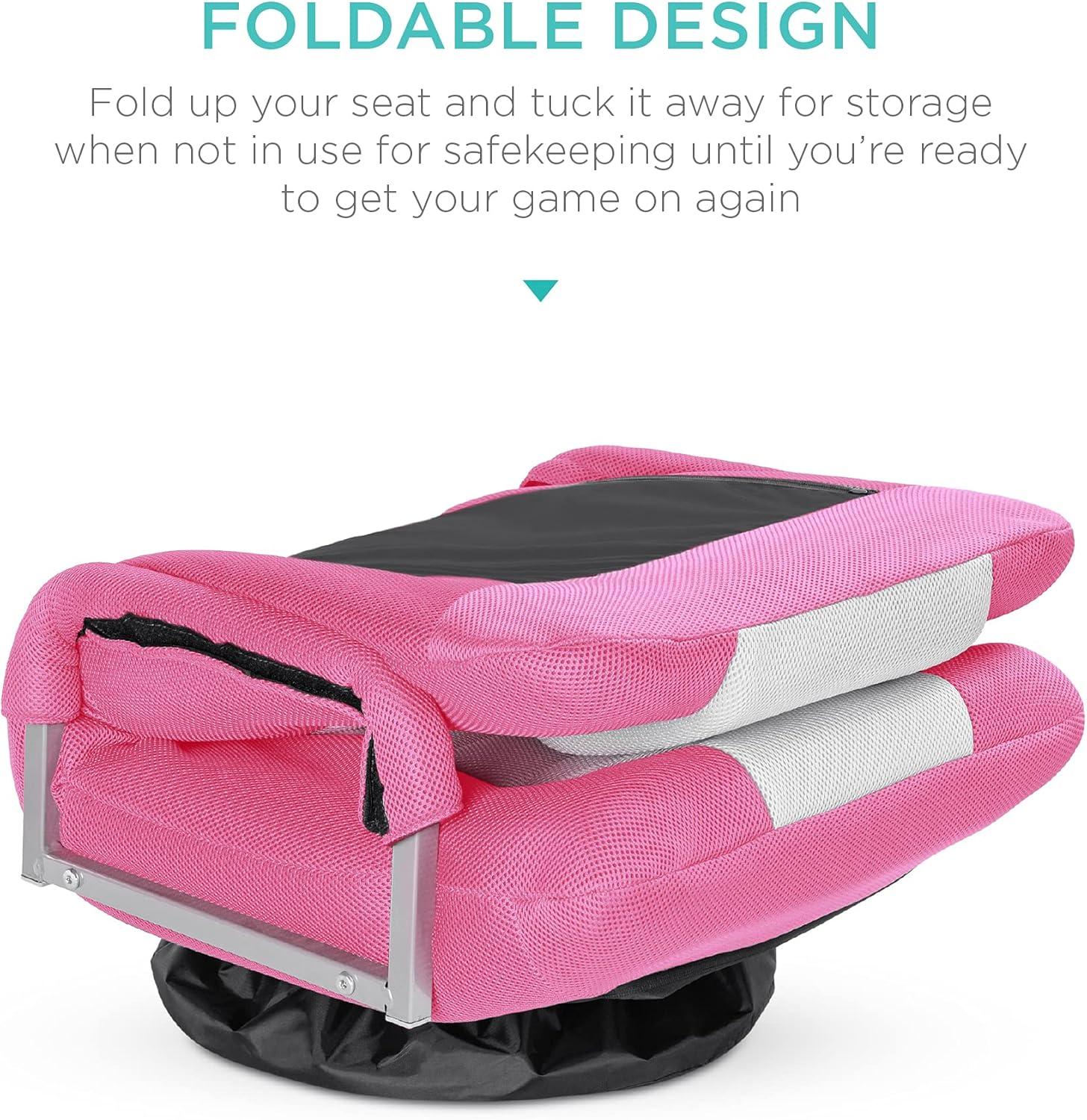 Best Choice Products Swivel Gaming Chair 360 Degree Multipurpose Floor Chair Rocker for TV, Reading, Playing Video Games w/Lumbar Support, Armrest Handles, Adjustable Foldable Backrest – Black/Blue(Pink/White)
