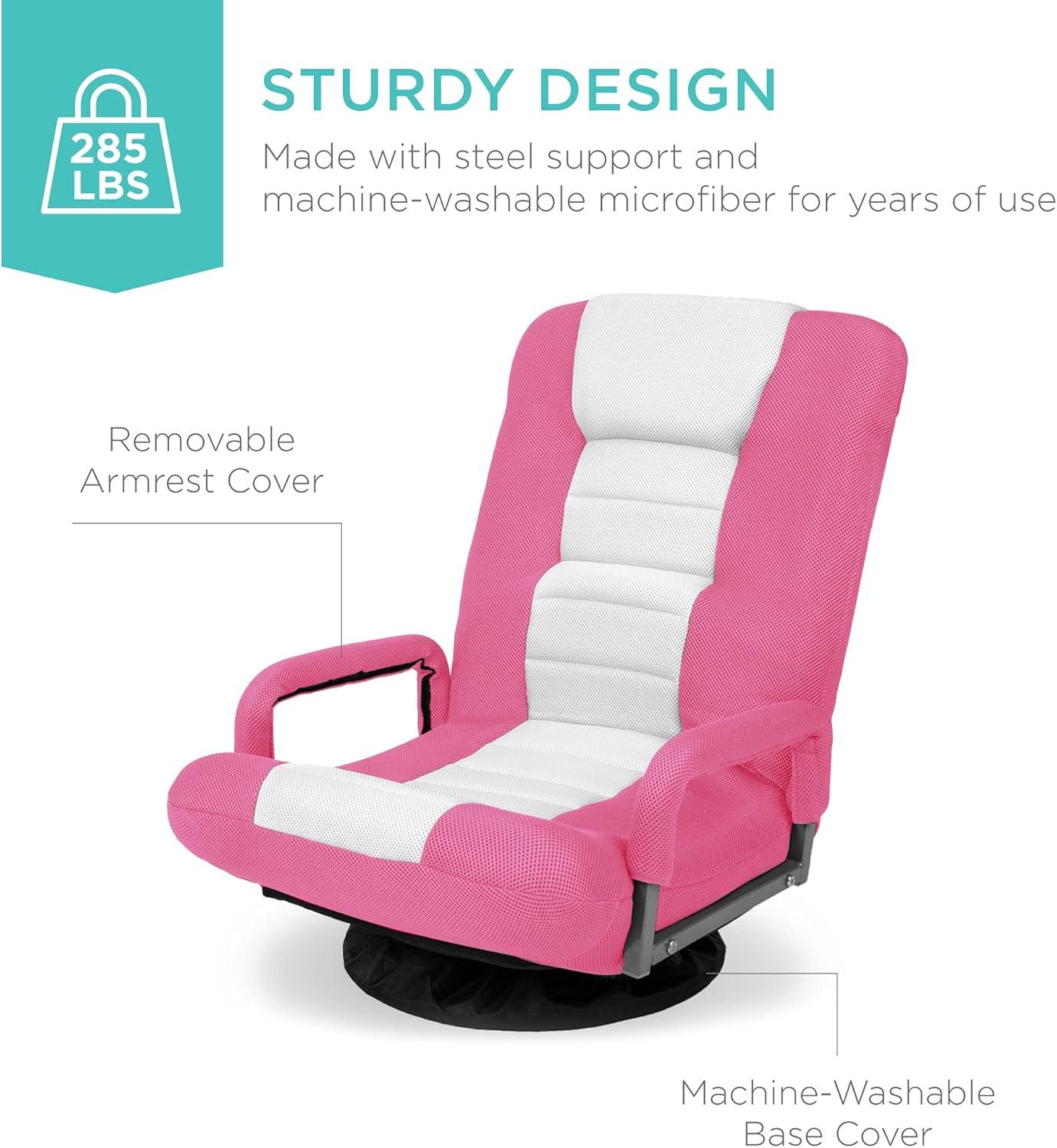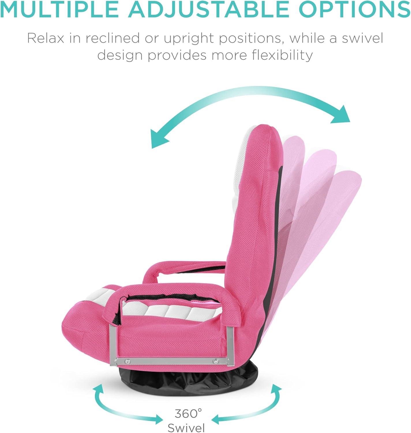 Best Choice Products Swivel Gaming Chair 360 Degree Multipurpose Floor Chair Rocker for TV, Reading, Playing Video Games w/Lumbar Support, Armrest Handles, Adjustable Foldable Backrest - Black/Blue(Pink/White)