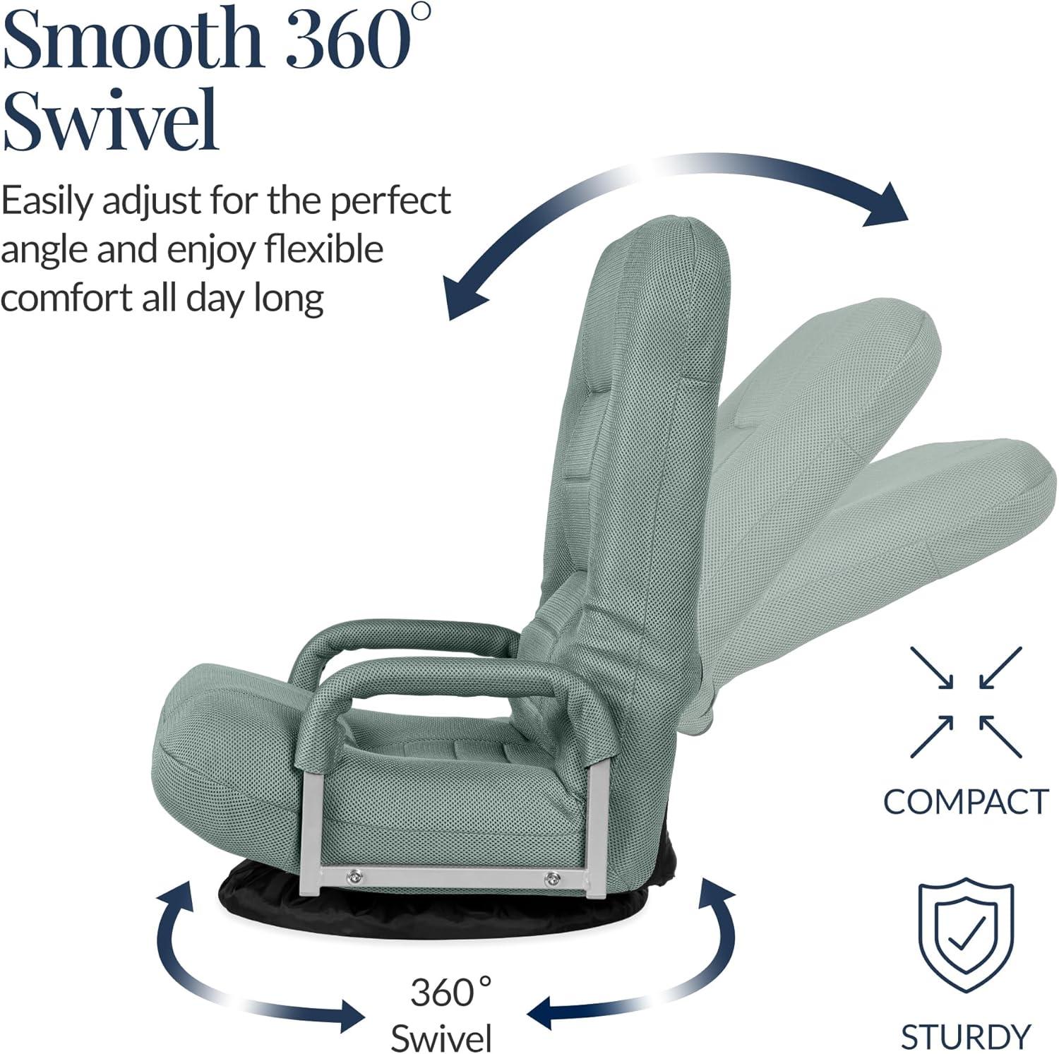 Best Choice Products Swivel Gaming Chair 360 Degree Multipurpose Floor Chair Rocker for TV, Reading, Playing Video Games w/Lumbar Support, Armrest Handles, Adjustable Foldable Backrest - Black/Blue(Sage Green)