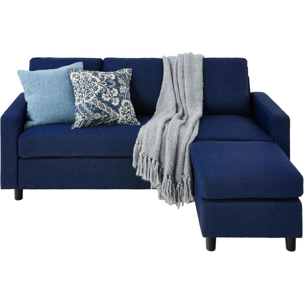 Best Choice Products Upholstered Sectional Sofa for Home, Apartment, Dorm, Bonus Room, Compact Spaces w/Chaise Lounge, 3-Seat, L-Shape Design, Reversible Ottoman Bench, 680lb Capacity – Blue/Gray(Dark Blue)