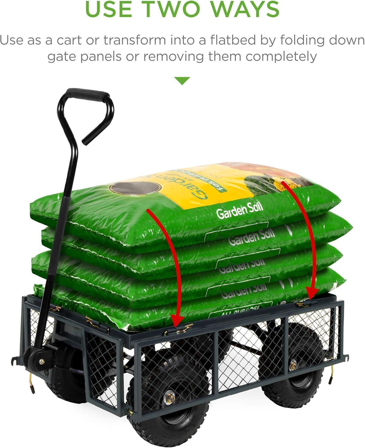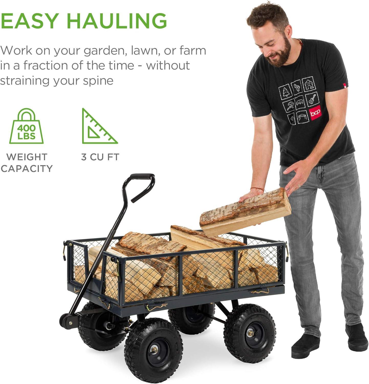 Best Choice Products Utility Garden Cart Wagon for Lawn, Yard w/Heavy-Duty Steel 400lb Weight Capacity, Removable Sides, Long Handle, 10in Tires - Gray(Gray)