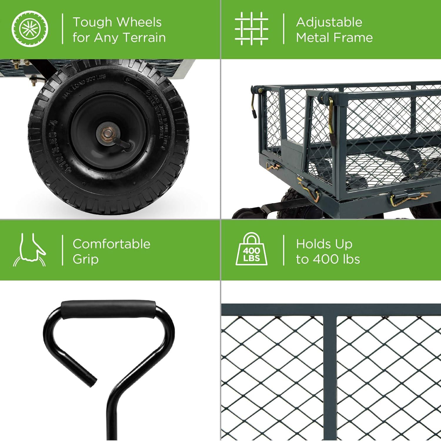 Best Choice Products Utility Garden Cart Wagon for Lawn, Yard w/Heavy-Duty Steel 400lb Weight Capacity, Removable Sides, Long Handle, 10in Tires – Gray(Green)