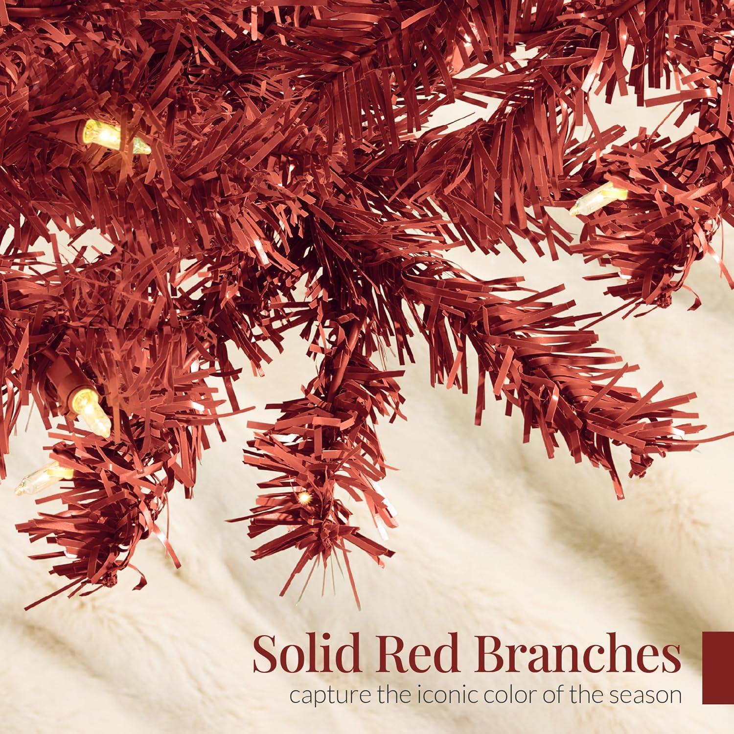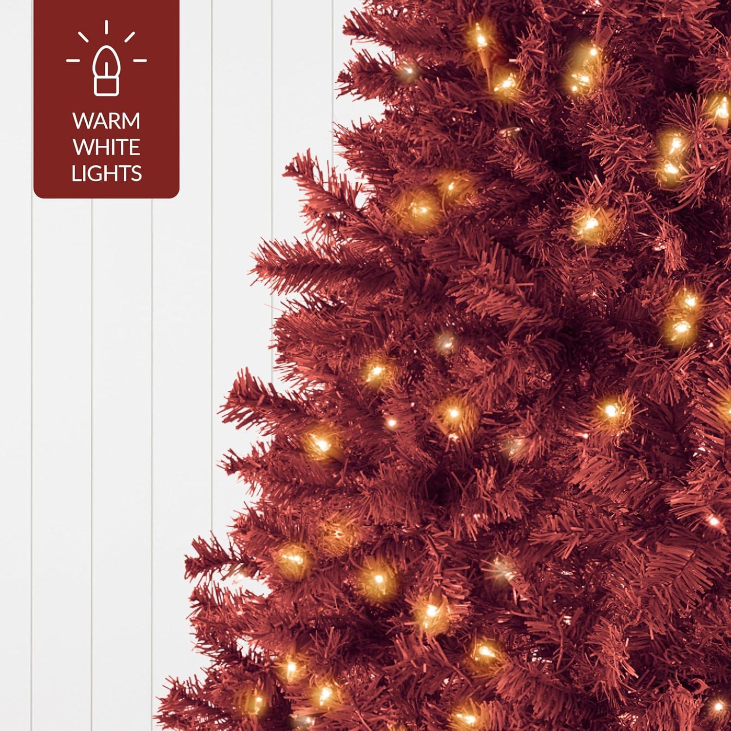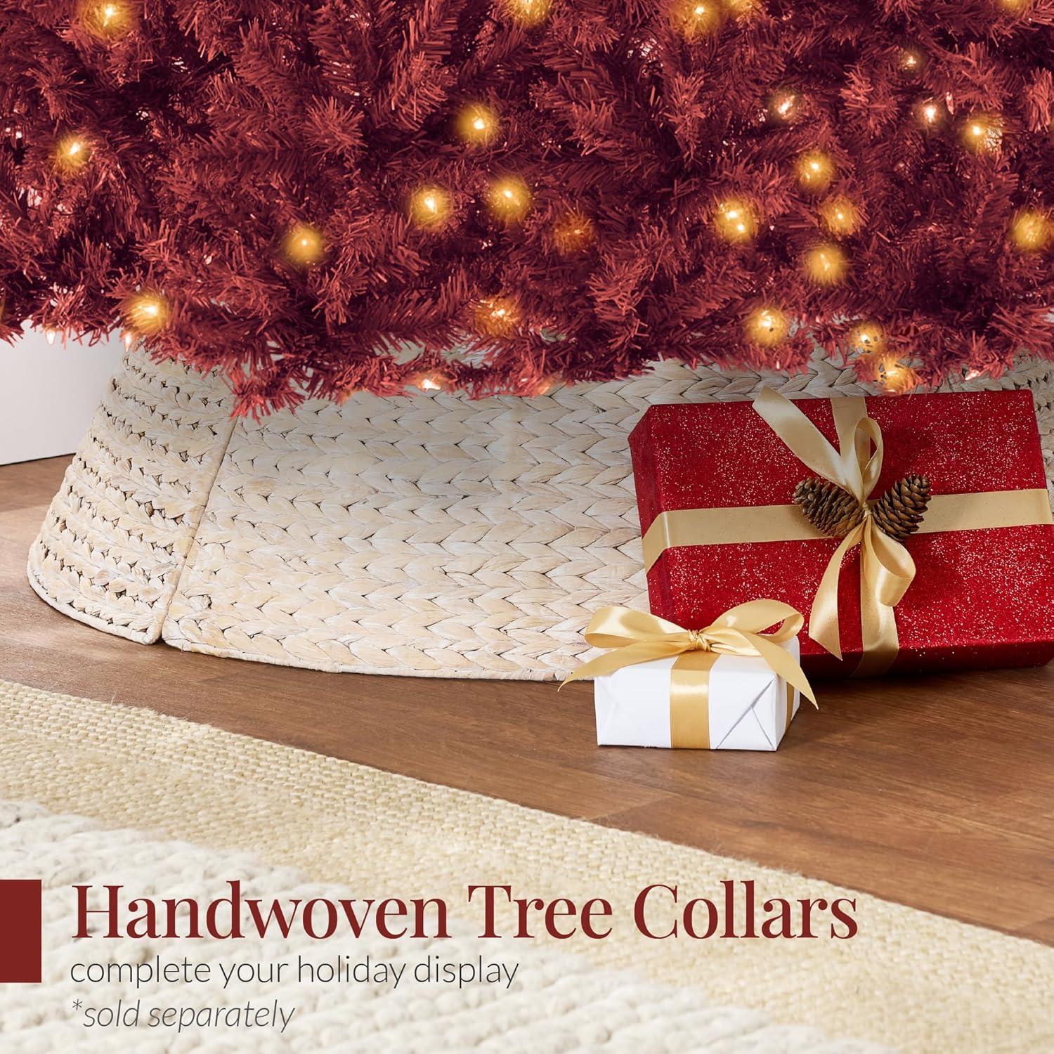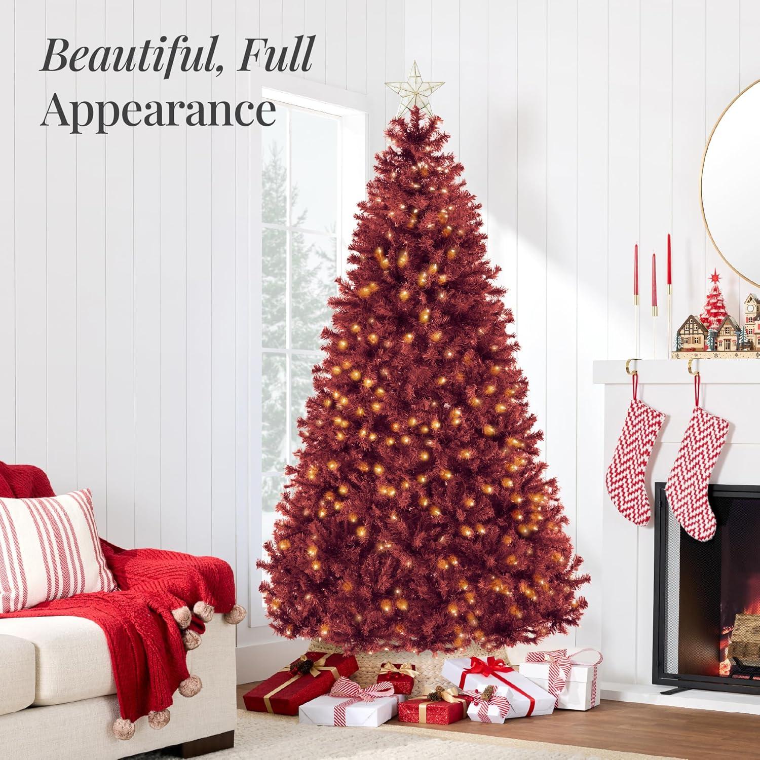 Best Choice Products White Christmas Tree 7.5ft Pre-Lit Artificial Pine Tree Premium Holiday Decoration w/Warm White Lights, Stand, Easy Assembly(Burgundy)