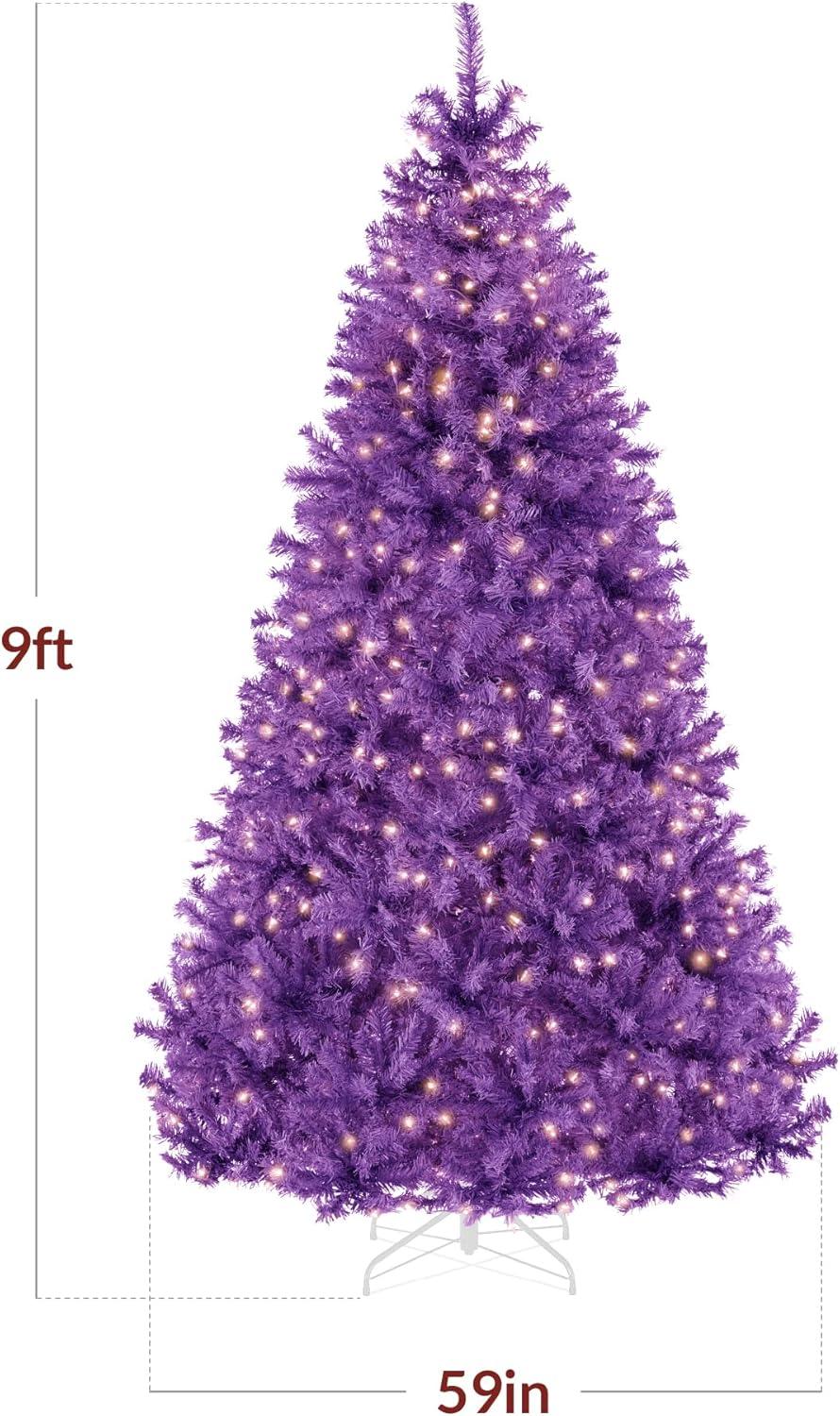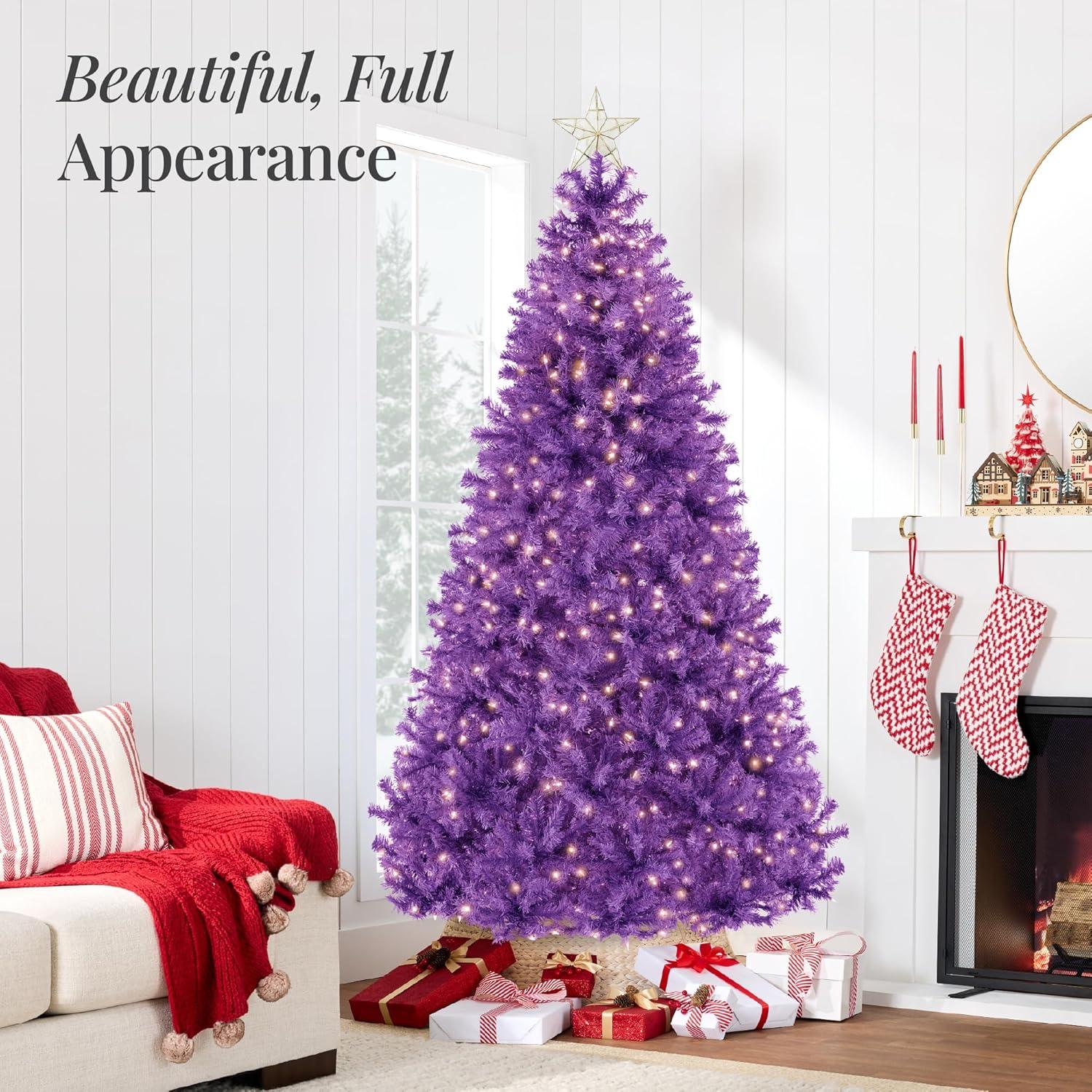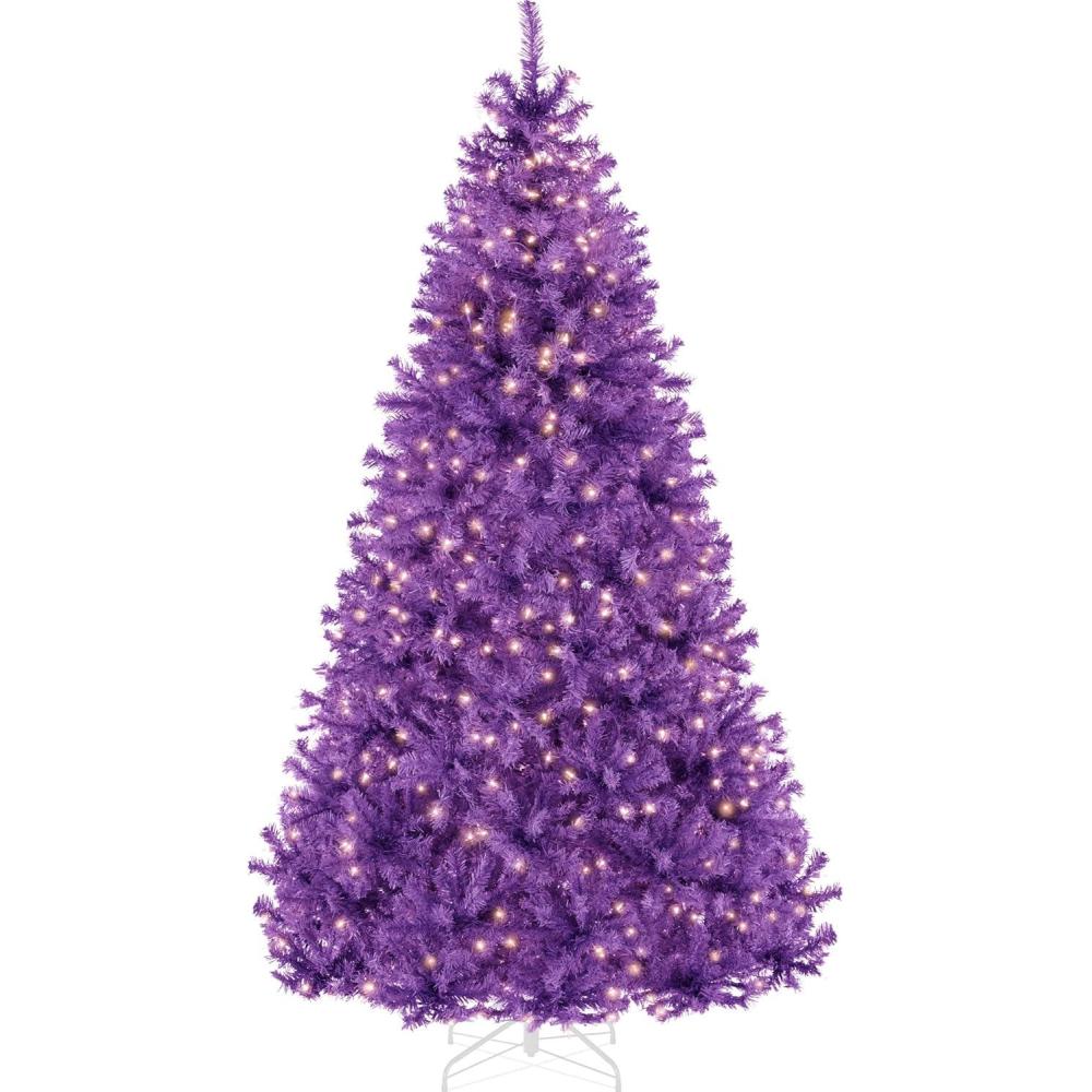 Best Choice Products White Christmas Tree 7.5ft Pre-Lit Artificial Pine Tree Premium Holiday Decoration w/Warm White Lights, Stand, Easy Assembly(Purple)